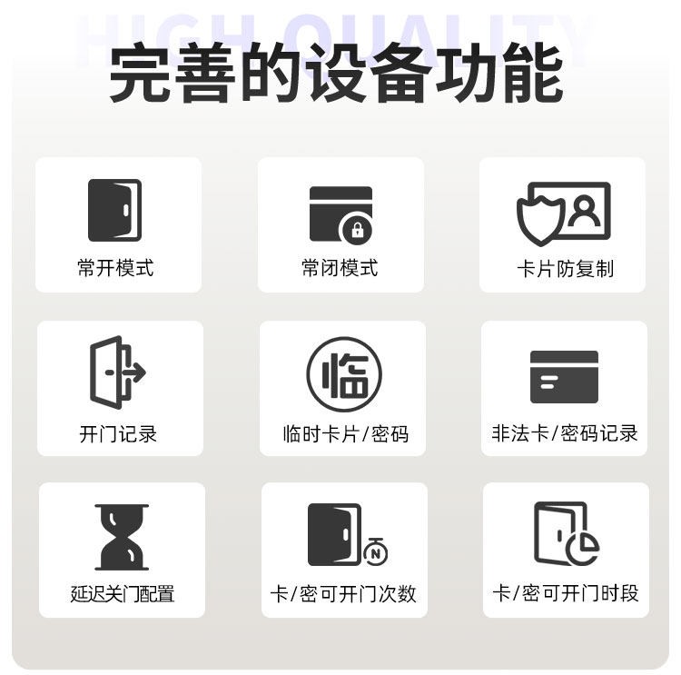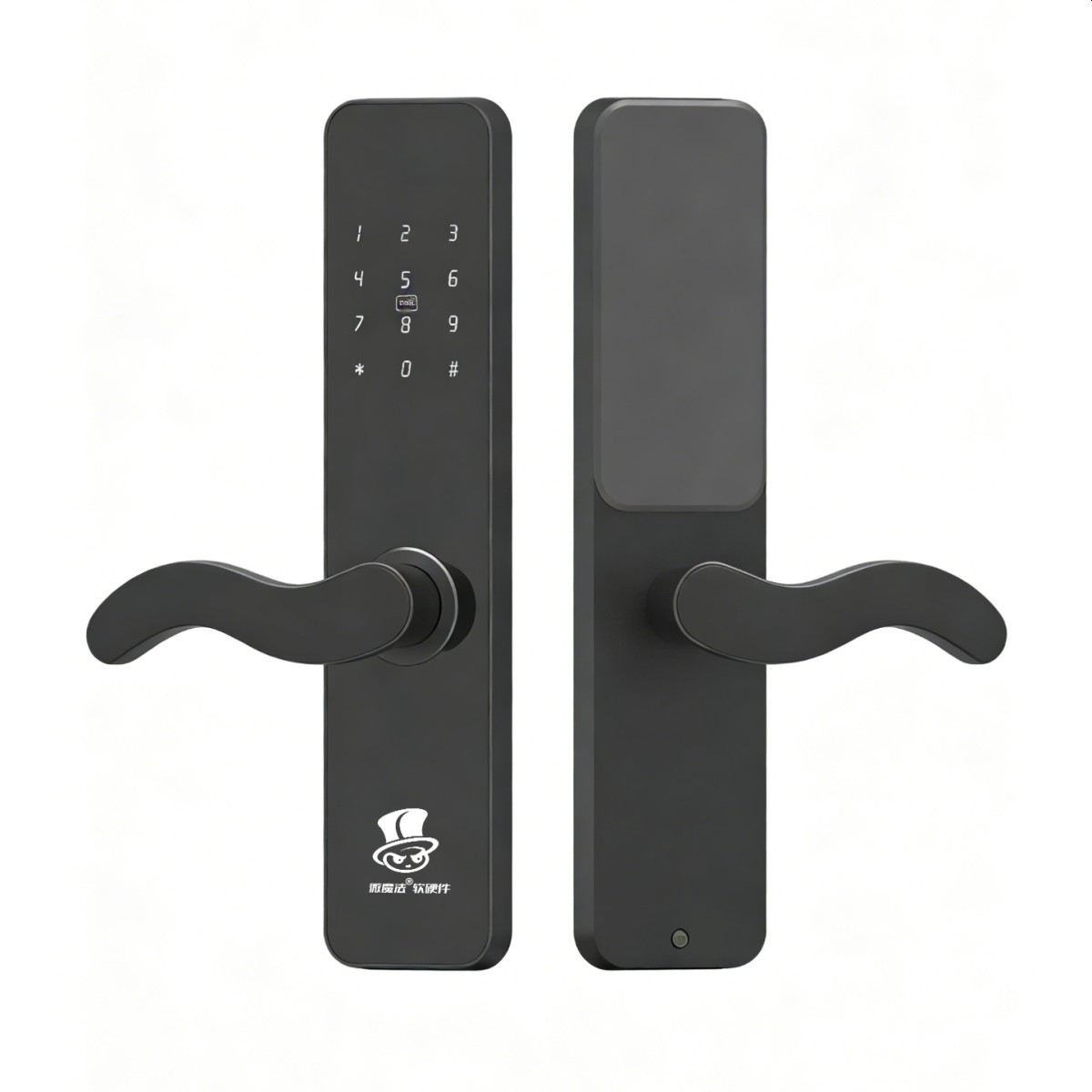 台中这款智能门锁提供室内门锁和防盗门锁两种选择,其中室内门锁尺寸为 2806521mm,适配 5050 锁体;防盗门锁尺寸为 3657021mm,适配 6068 锁体,可满足不同场景的安装需求。它采用铝合金一体成型搭配钢化玻璃面板打造,兼具坚固耐用的品质与简洁美观的视觉效果。门锁支持蓝牙无线通讯,解锁方式丰富多样,密码、卡片、蓝牙、钥匙四种方式随心选择,满足不同使用习惯与应急需求。其工作温度范围为 - 20~70℃,能适应多数地区的气候条件,采用碱性电池供电,安装更换便捷,是兼具安全性与实用性的门锁选择。